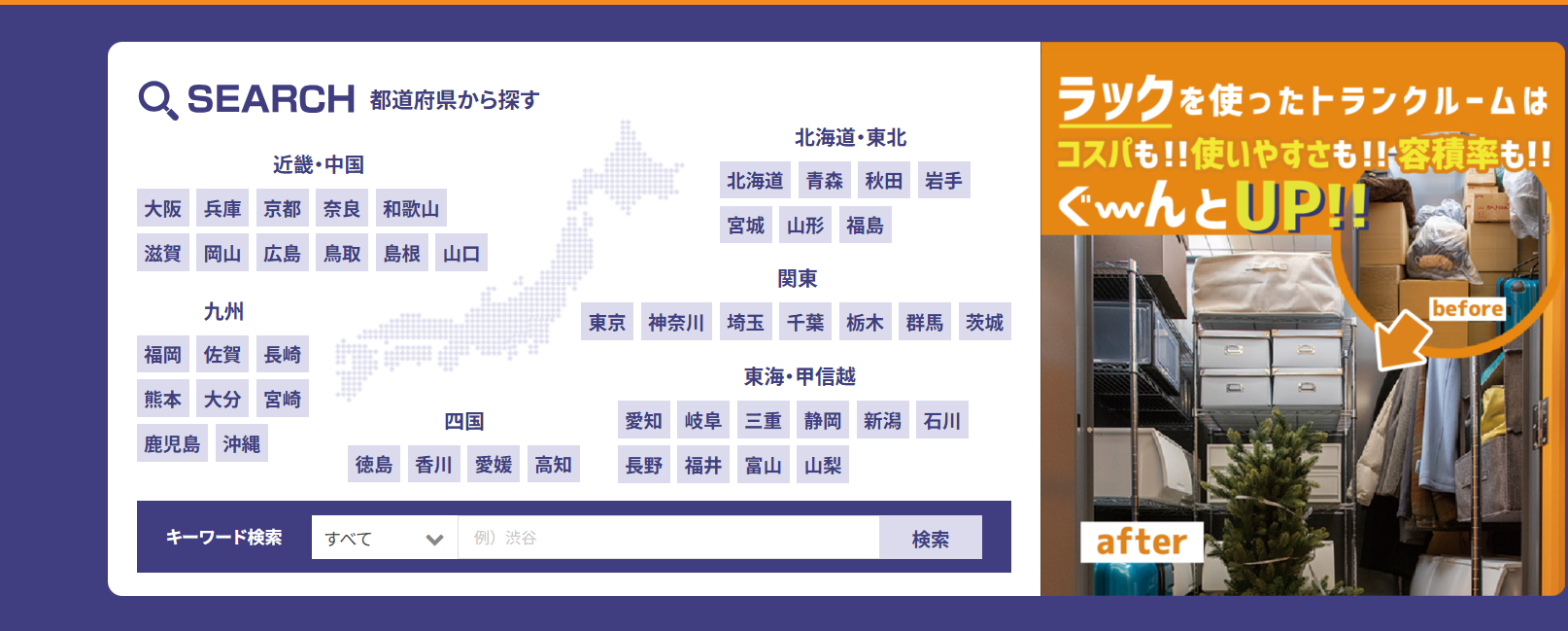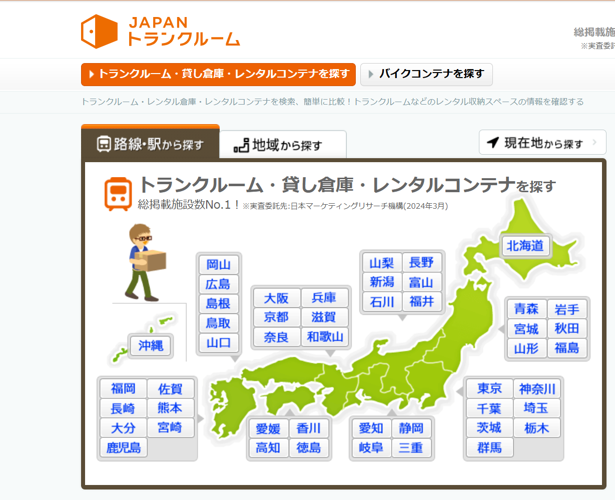 JAPANトランクルームは、全国のトランクルームを検索できるポータルサイトです。